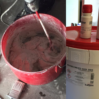 Tee kerralla tarpeeksi sävytettyä laastia, laske neliö määrä ja tee sen mukaan, ettei vahingossa käy niin että tavara loppuu kerken ja joudut sävyttämään uutta satsia, koska silloin voi tulla väri eroja, muista tämä myös viimeisessä vaiheessa.